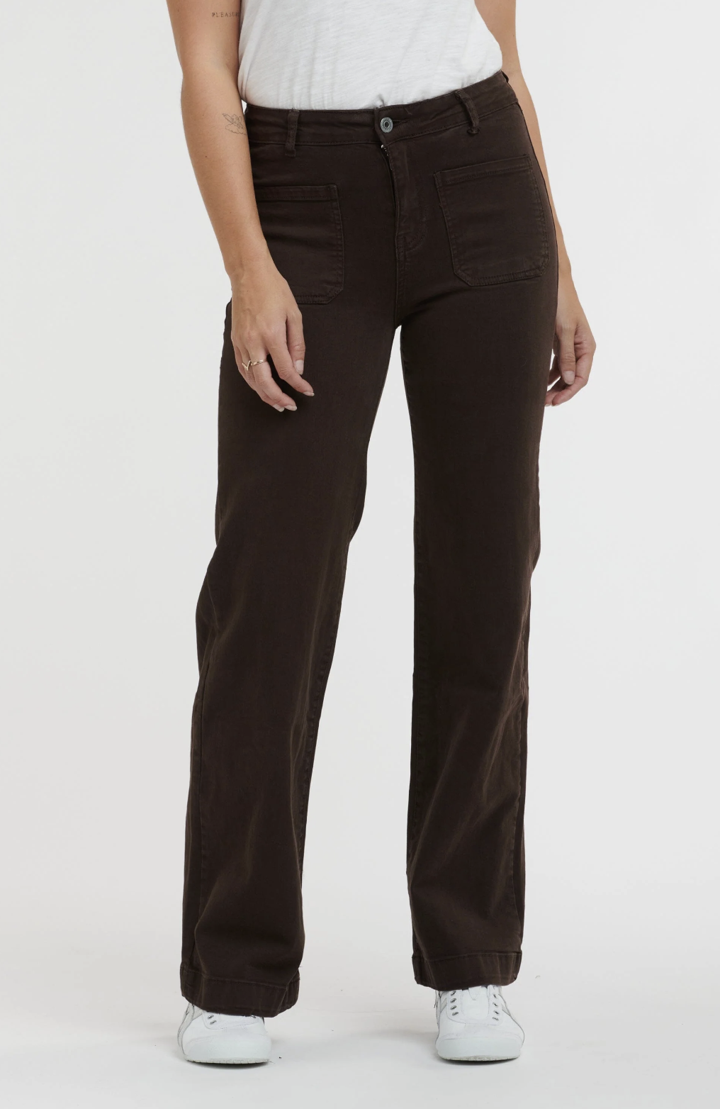The Bobbi Jean offers stretchy comfort and a high waist for a flattering fit. Wide leg cut and front patch pockets for a relaxed chic look. Dress up with a gorgeous blouse or keep relaxed with a cropped knit and boots.