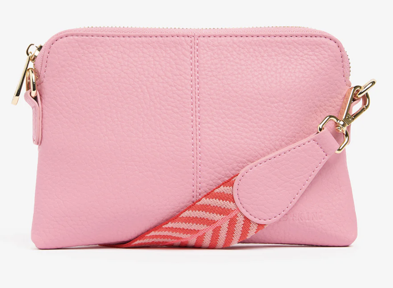 The Elms+King Bowery Petite offers the style of the bestselling Bowery Wallet, in a compact design. Made from 100% recycled premium polyurethane with 14-karat light gold-plated hardware, the Bowery Petite has capacity for your essentials and features a rear zipper pocket, and an interior open top slip pocket. With its adjustable/removable wide crossbody strap in an exclusive chevron design, this piece can be used as a compact clutch, shoulder bag or crossbody bag.