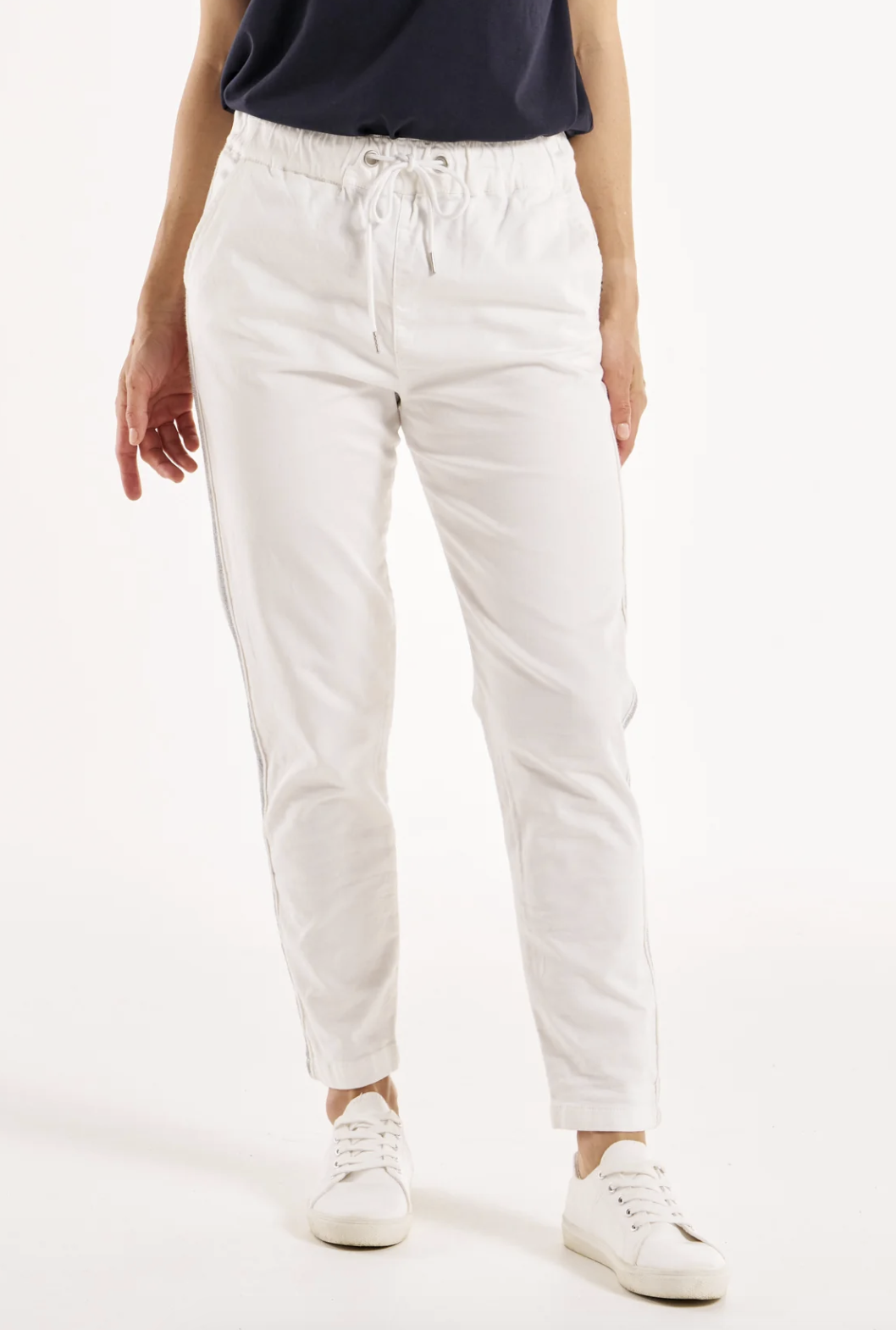 The Brooks Jean offers a flattering mid-high rise fit crafted from stretch knit denim for ultimate comfort and style. It features an elasticated waistband and trimming along the side leg, combining practicality with a sleek, modern look.