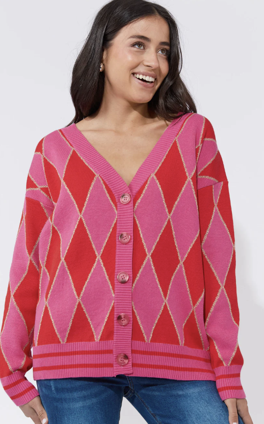 Whether you're off to a lively night out or a relaxed weekend adventure, the Casablanca Lurex Cardigan makes a bold impression and expresses your individuality. Crafted in a soft cotton knit with long sleeves and a button-down front, this cardigan provides warmth and comfort, making it suitable for any season. The eye-catching Argyle pattern is enhanced with Lurex thread, adding a fun, fashionable touch that ensures you turn heads wherever you go. Pair this lively cardigan with your favourite tops or dresses to perfect your ensemble.