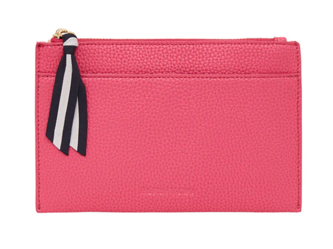 The Elms and King New York Coin Purse is made from premium polyurethane, with slim line construction. The coin purse features a front open top, slip pocket with a hidden magnetic closure. The centre compartment has a top zipper closure with an accent ribbon zipper pull.