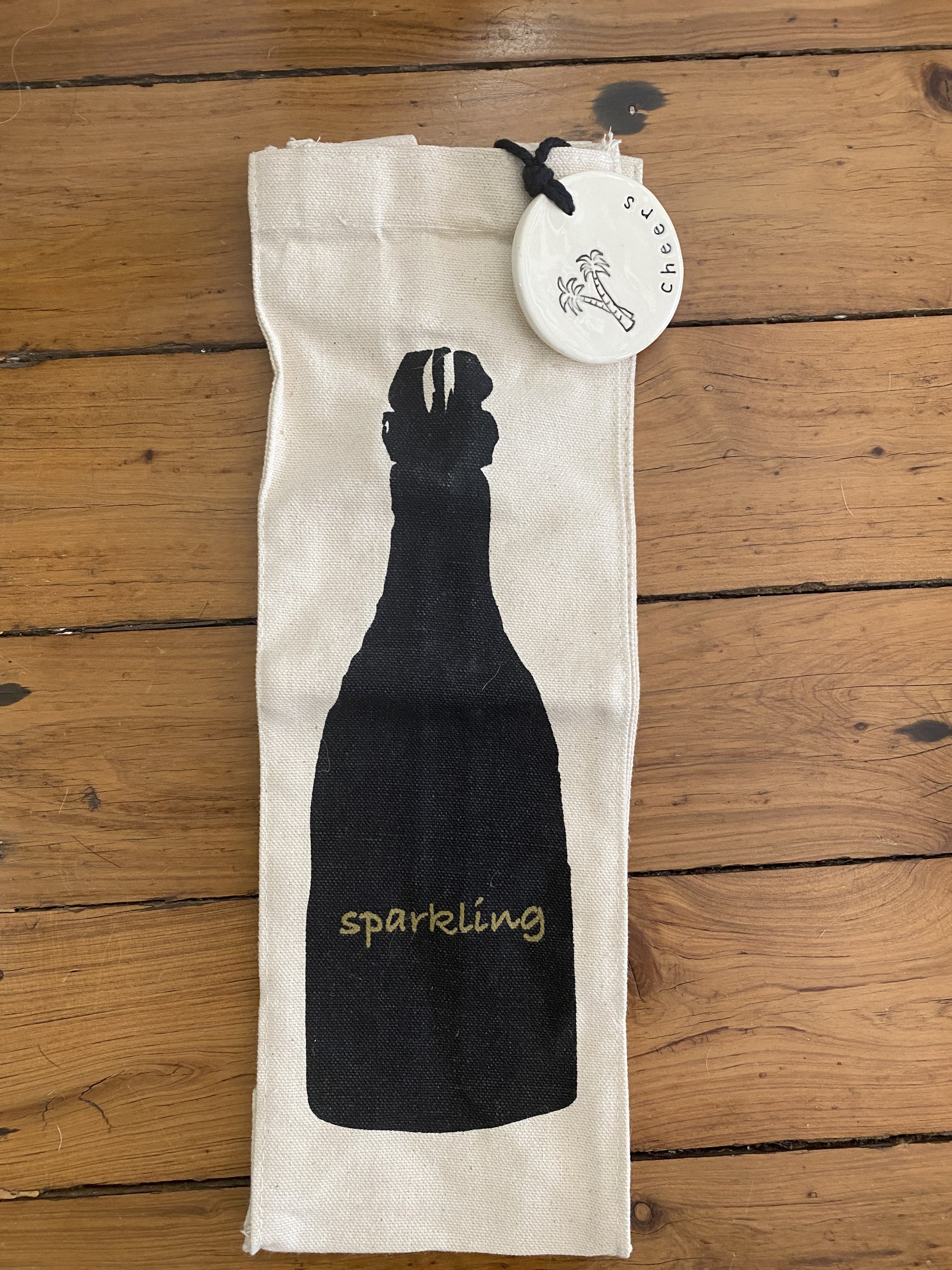 Cotton Bottle bag with tag- Palm Cheers