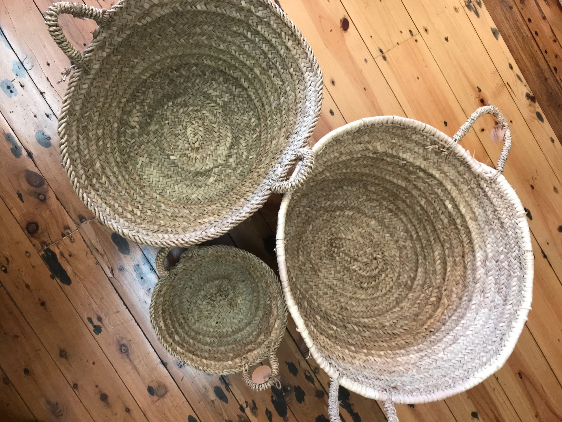 With small, medium and large in the set, and handles on each. These baskets are handy for storage in many rooms in the house. Great for planters, bathroom, toys, books or magazines etc. Add a Coastal Hampton’s feel to any room.