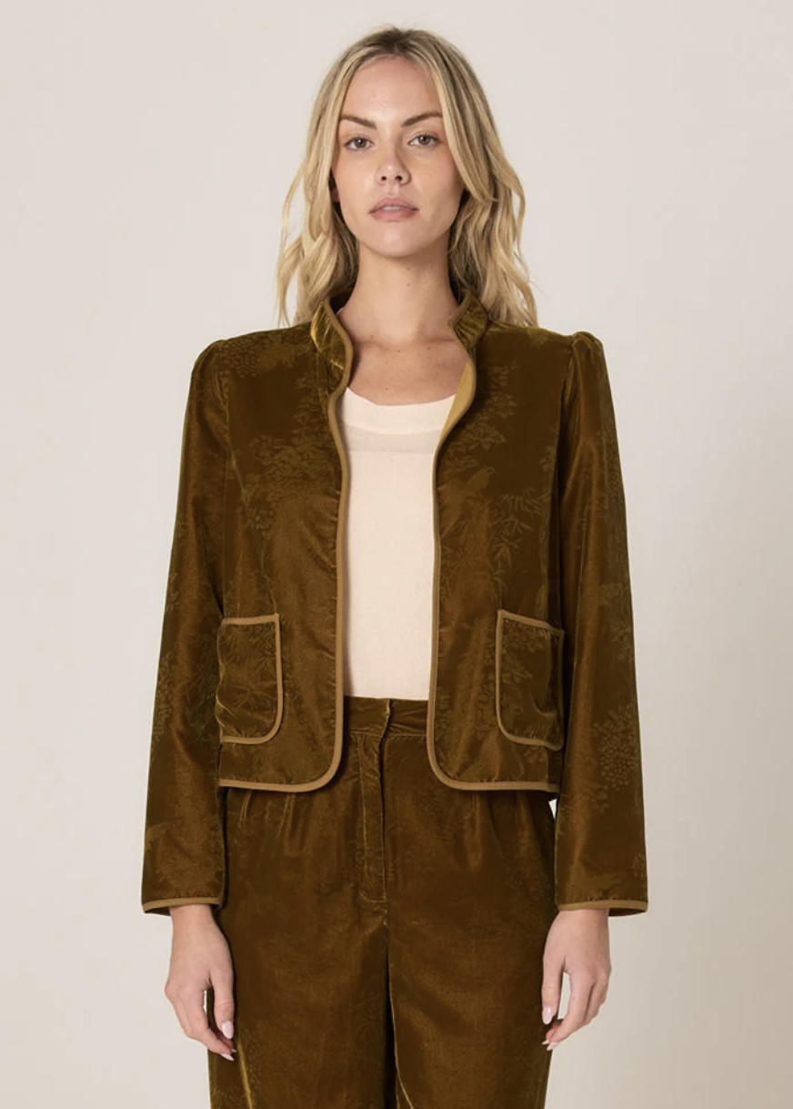 The Intricate Jacket brings a sophisticated finish to any ensemble. Featuring binding on edges, patch pockets, and a puffy sleeve head, this piece is unlined and offers a regular fit silhouette. A polished, classic layer perfect for transeasonal styling.