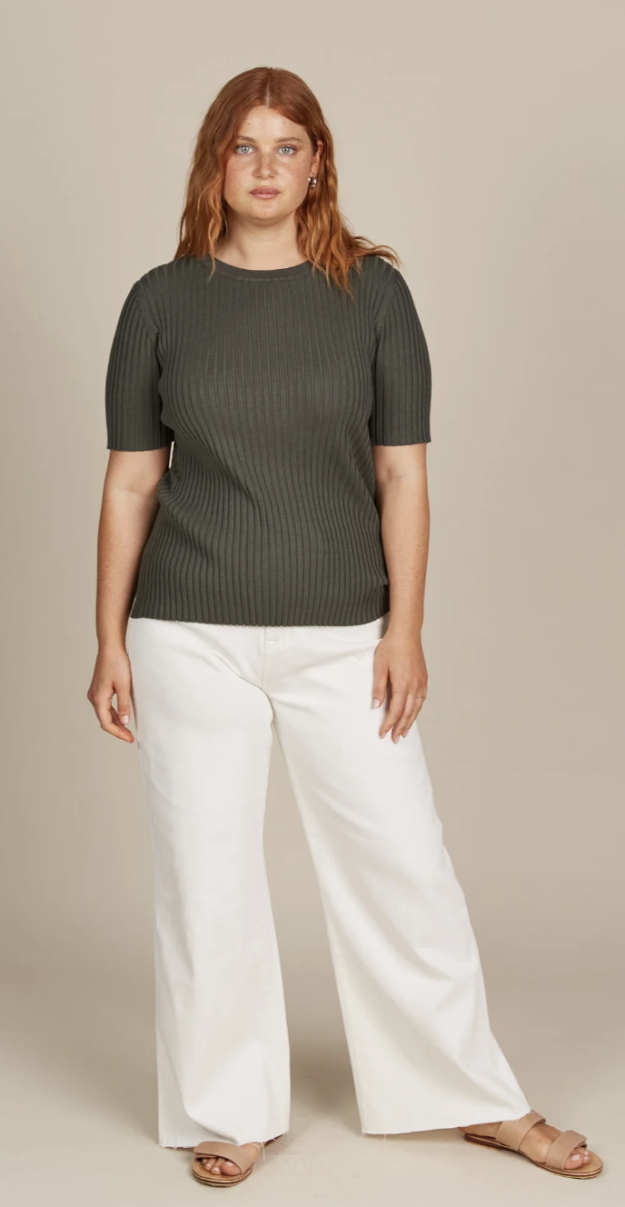 Made from a cosy and stretchy rib knit, the Juliette Top is one you'll find yourself wearing on repeat. Its classic round neck, short sleeves, and fitted, hip-length cut make it incredibly versatile. Team it with denim shorts and sneakers for a relaxed coffee outing, or style it with a blazer, midi skirt, and loafers for a chic nine-to-five ensemble.