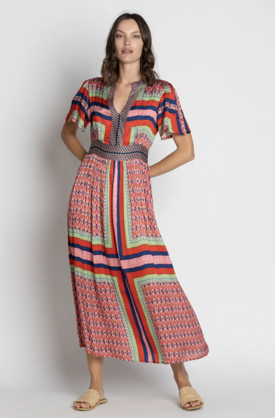A shirred panel at the back ensures flexible fit, while the vibrant digital scarf print brings colour and movement to every step. Perfect for warm days and balmy nights, it’s the kind of dress you’ll reach for from getaway to weekend.