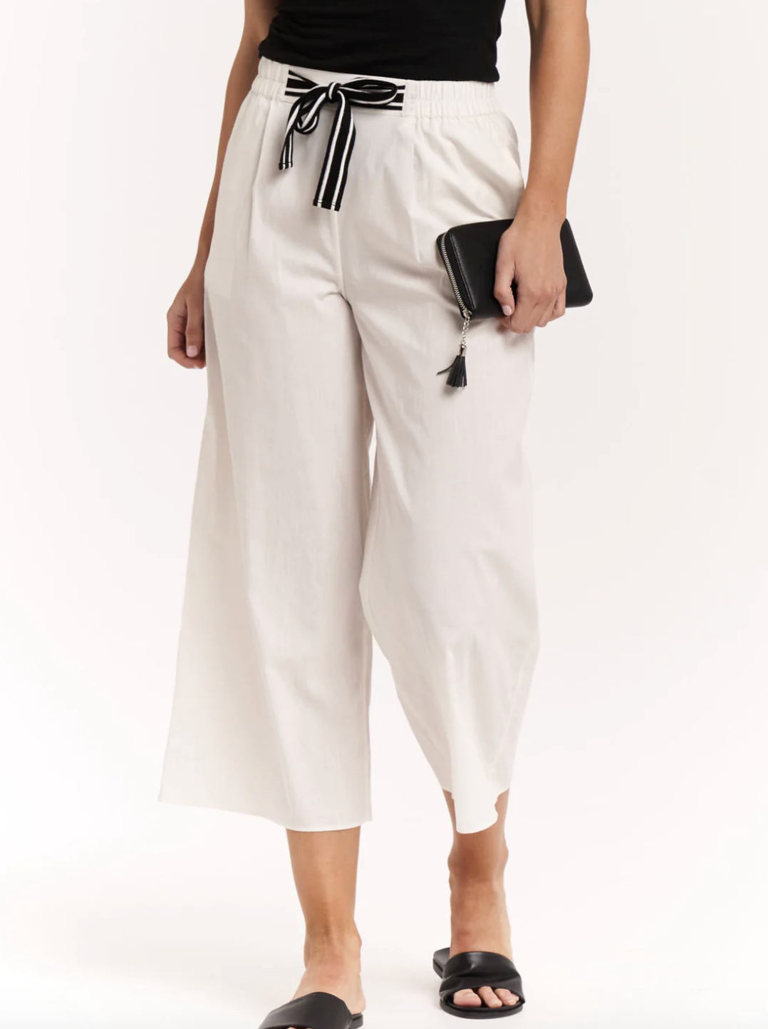 - Flat front waistband with drawstring