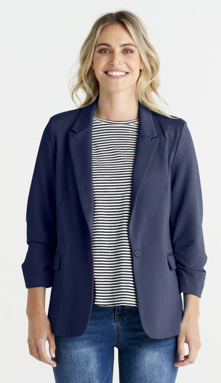Get ready to elevate your casual chic game with the Ponte Blazer, the perfect blend of comfort and effortless style! Made with a soft stretch hand feel, this blazer is designed to keep you feeling cozy and free to move. Fitted to the body, it flatters your figure while maintaining a relaxed vibe.