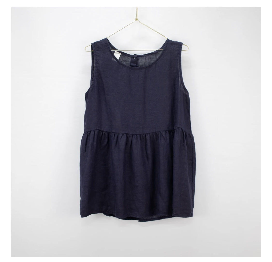 Pure linen button down back singlet top by Montaigne . Soft European linen , the shape suits a number of sizes and the design is versatile and classic .