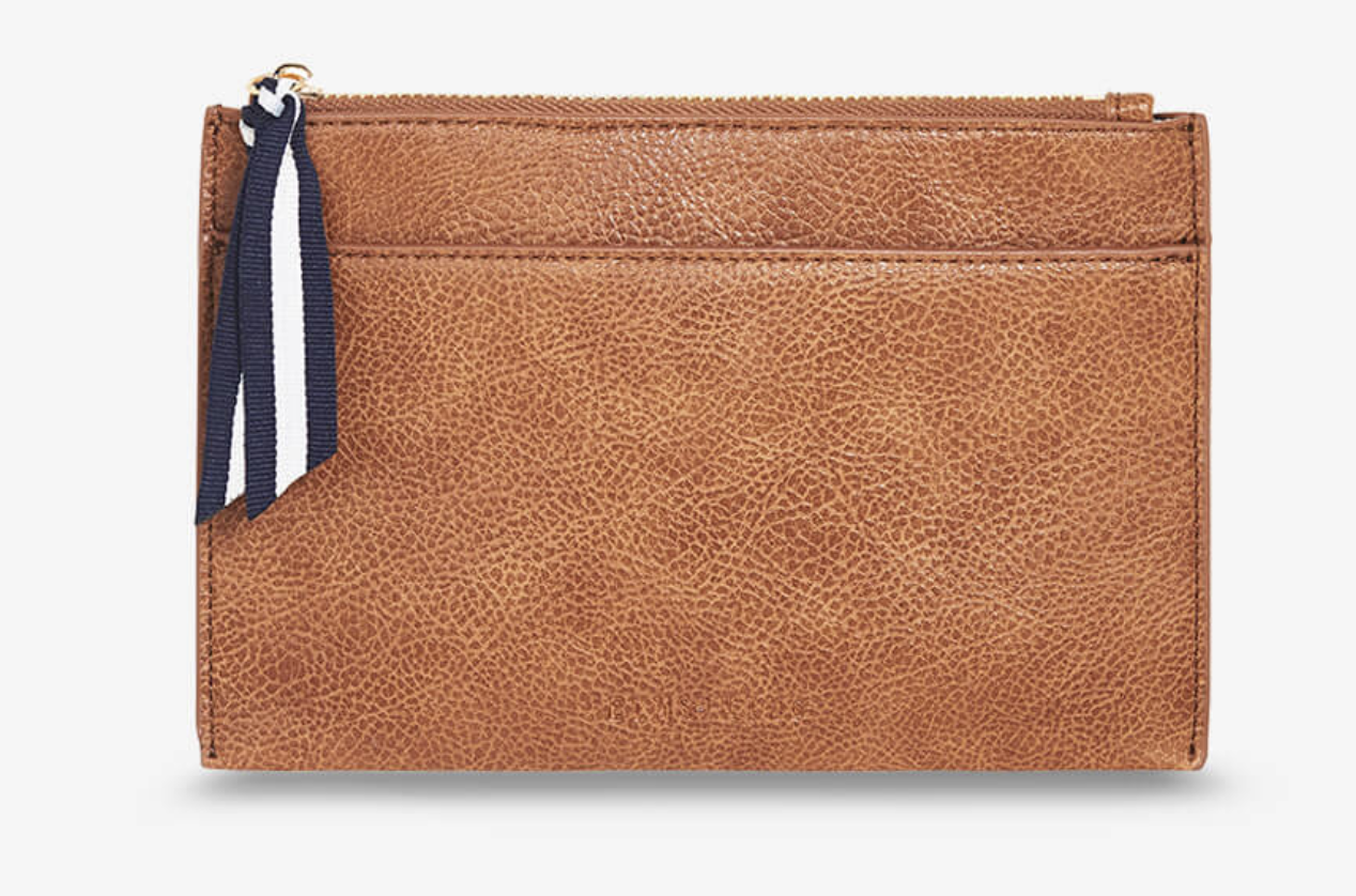 The Elms+King New York Coin Purse is made from premium polyurethane, with slim line construction. The coin purse features a front open top, slip pocket with a hidden magnetic closure. The centre compartment has a top zipper closure with an accent ribbon zipper pull