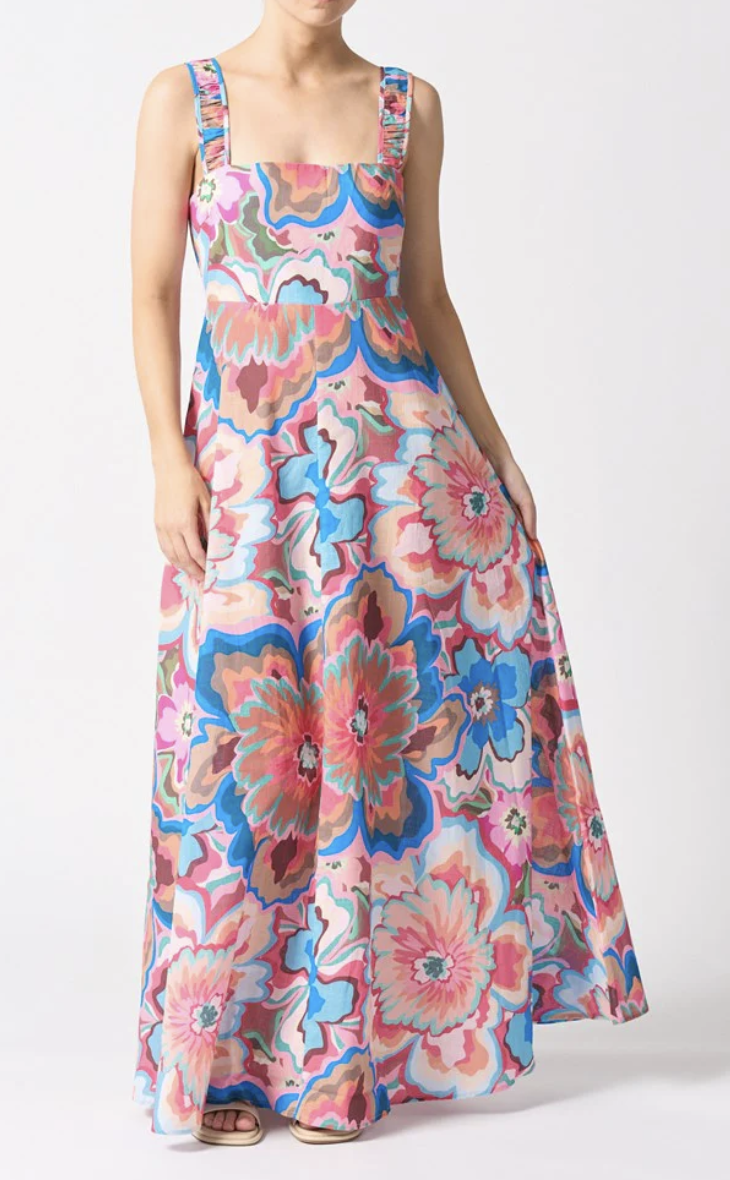 Flow into the season with the Roma Dress. This full-length style features a softly structured bodice, wide ruched straps, and a smocked back for ease and comfort. Cut in airy cotton voile, it’s the perfect maxi for long lunches or garden weddings.