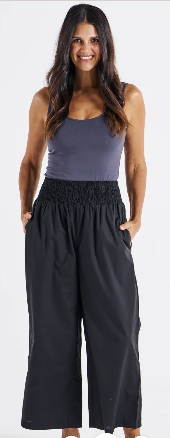 The Sevilla Wide Leg Cotton Pant offers a relaxed fit with a smooth cotton feel, making it perfect for everyday wear. The shirred waistband and wide leg design add a touch of comfort and style to your springtime wardrobe.